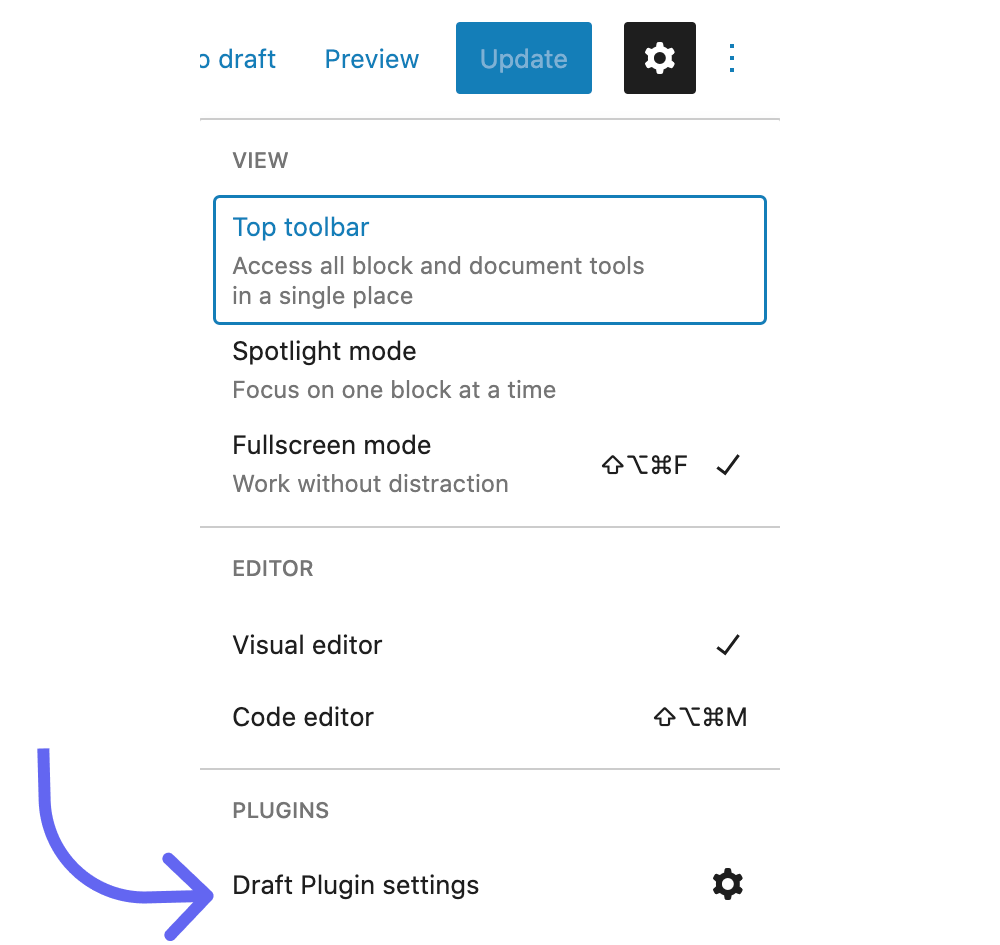 Click the 3 dots > Go to Draft Plugin Settings
